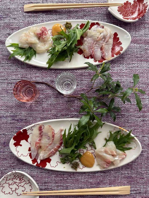 鯛の梅昆布締め ゆず味噌&柚子胡椒添え