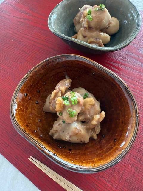 明石の野菜と魚のおもてなしサロン「Maman’s Dream」主宰川端寿美香です。里芋の胡桃味噌煮込み〜残り物でひと品10個ほど残っていた小さい里芋。2個···