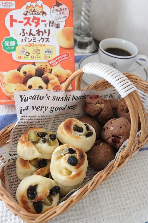 <レシピ>さつま芋とレーズンのくるくるパン&クランベリーとクルミのカカオパン