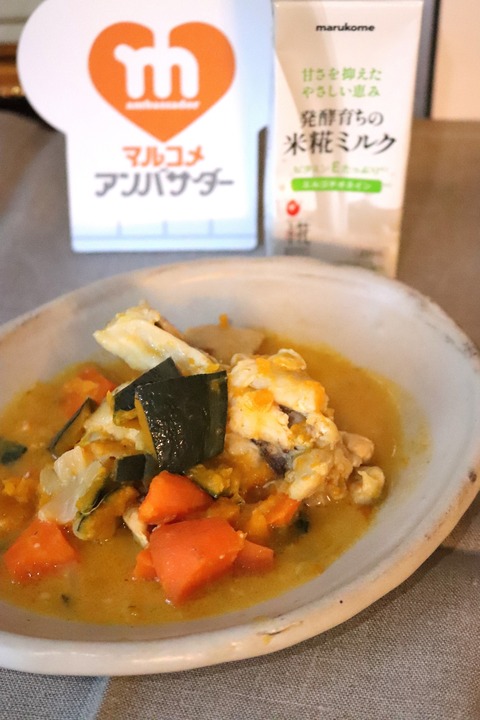 手羽元肉とかぼちゃの米糀ミルク煮